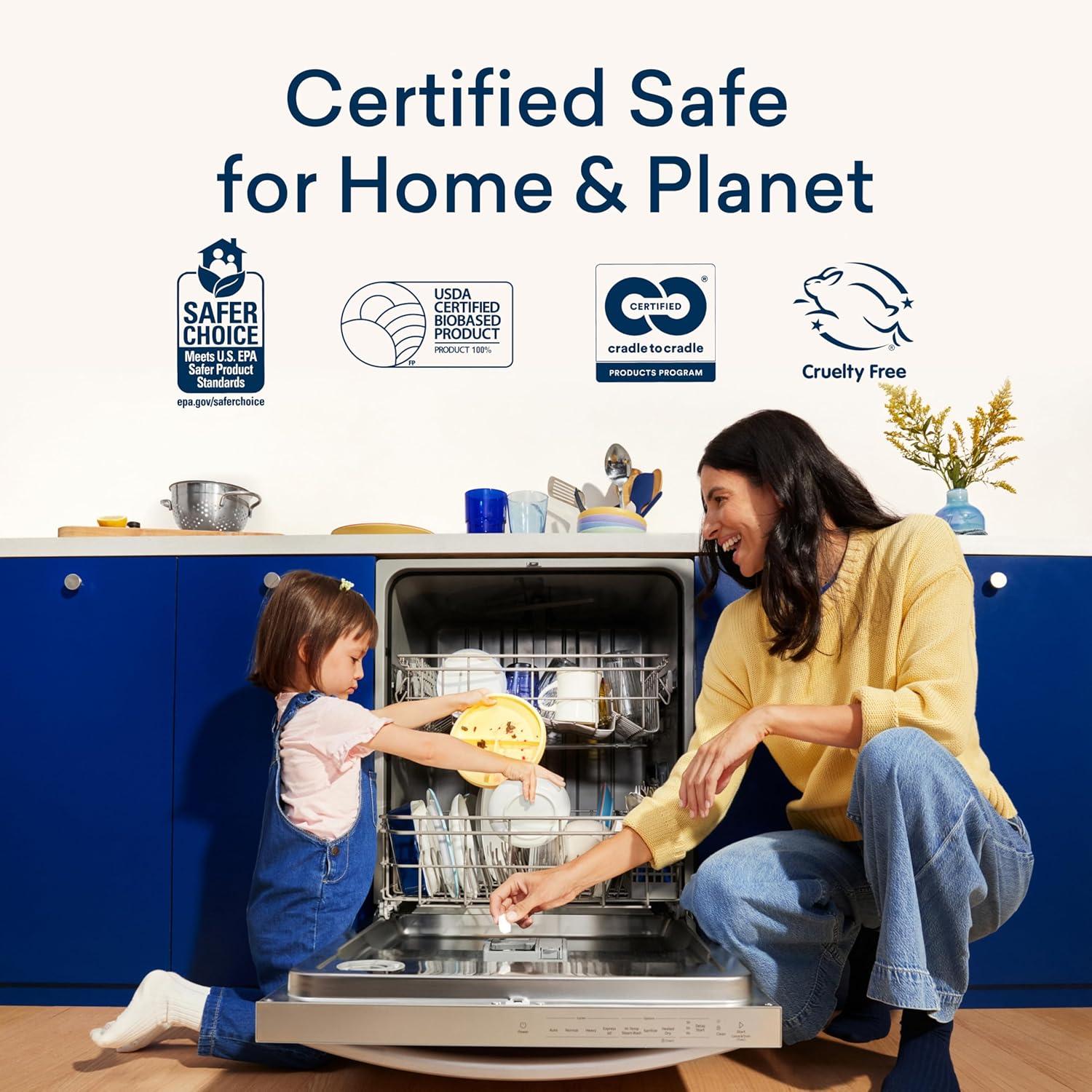 CLEAN INGREDIENTS. Microplastic-free, septic-safe formula made with plant and mineral-based cleaning power so it’s powerful enough to combat spotting and filming even in hard water, but safe for use around everyone in the family. Formulated clean without potentially gut-harming ingredients. EPA Safer Choice, Leaping Bunny Cruelty-Free, Vegan, B Corp Certified, Climate Neutral, USDA Bio-Preferred.