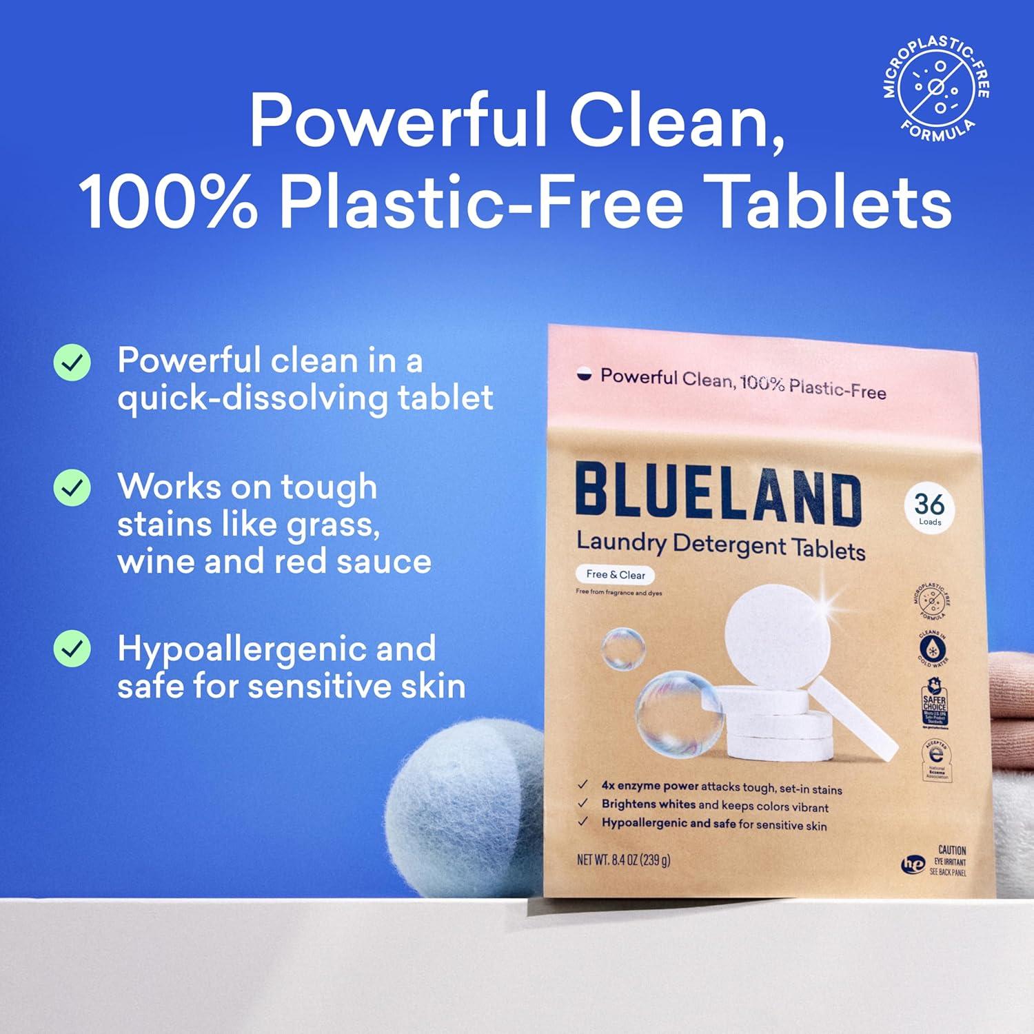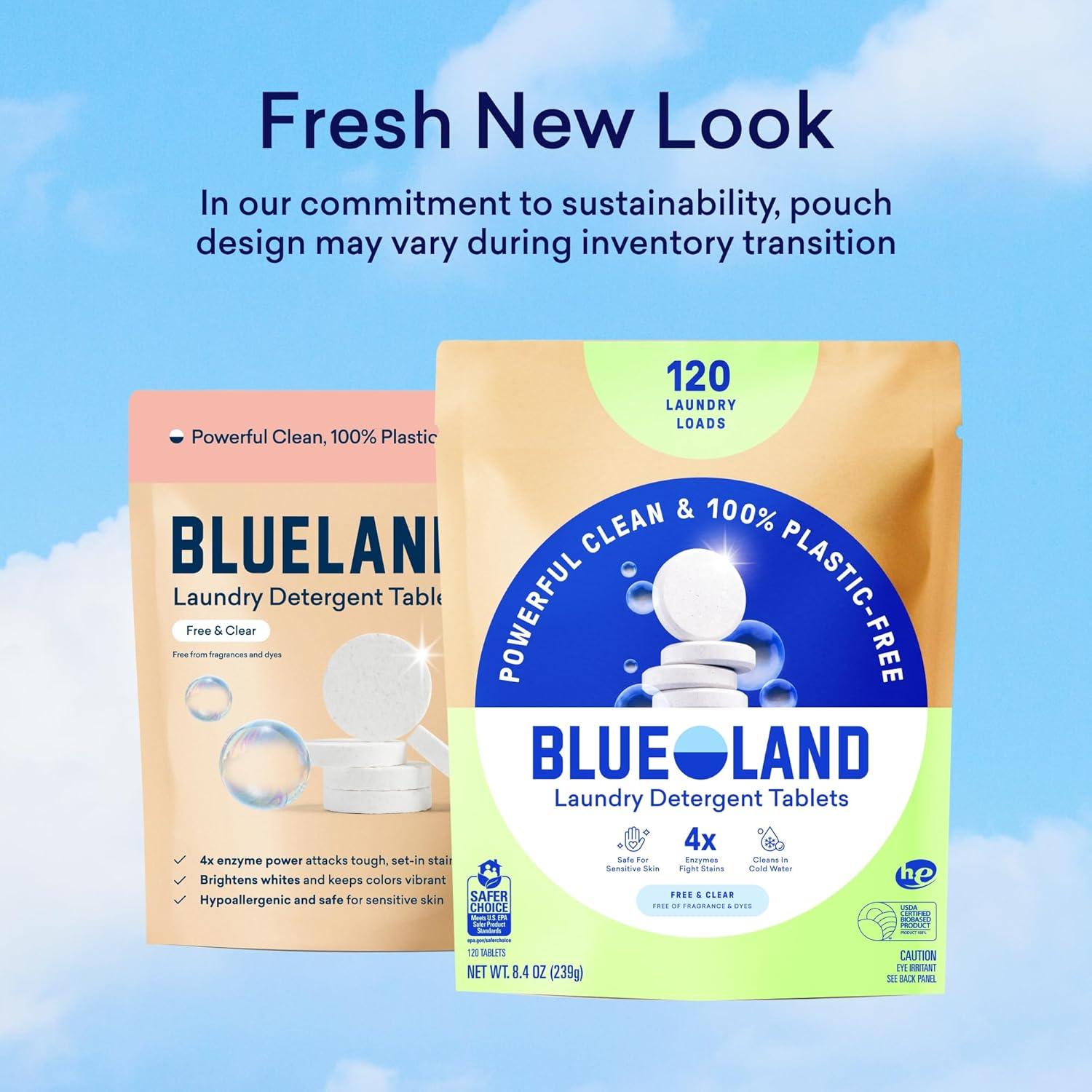 BLUELAND Laundry Detergent Tablets, 60 Count, Spring Bloom Scent, Plastic-Free Eco-Friendly Pods, Sheets, Liquid Alternative – Safe for Sensitive Skin, Gentle(Fragrance Free)
