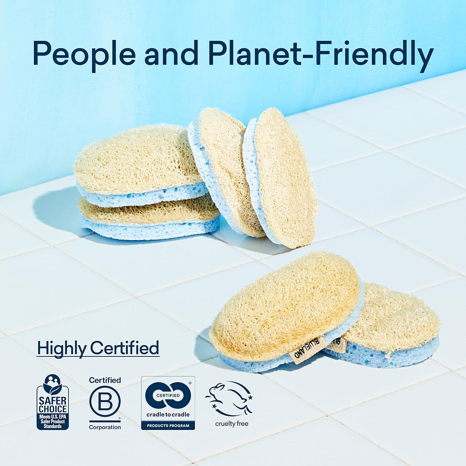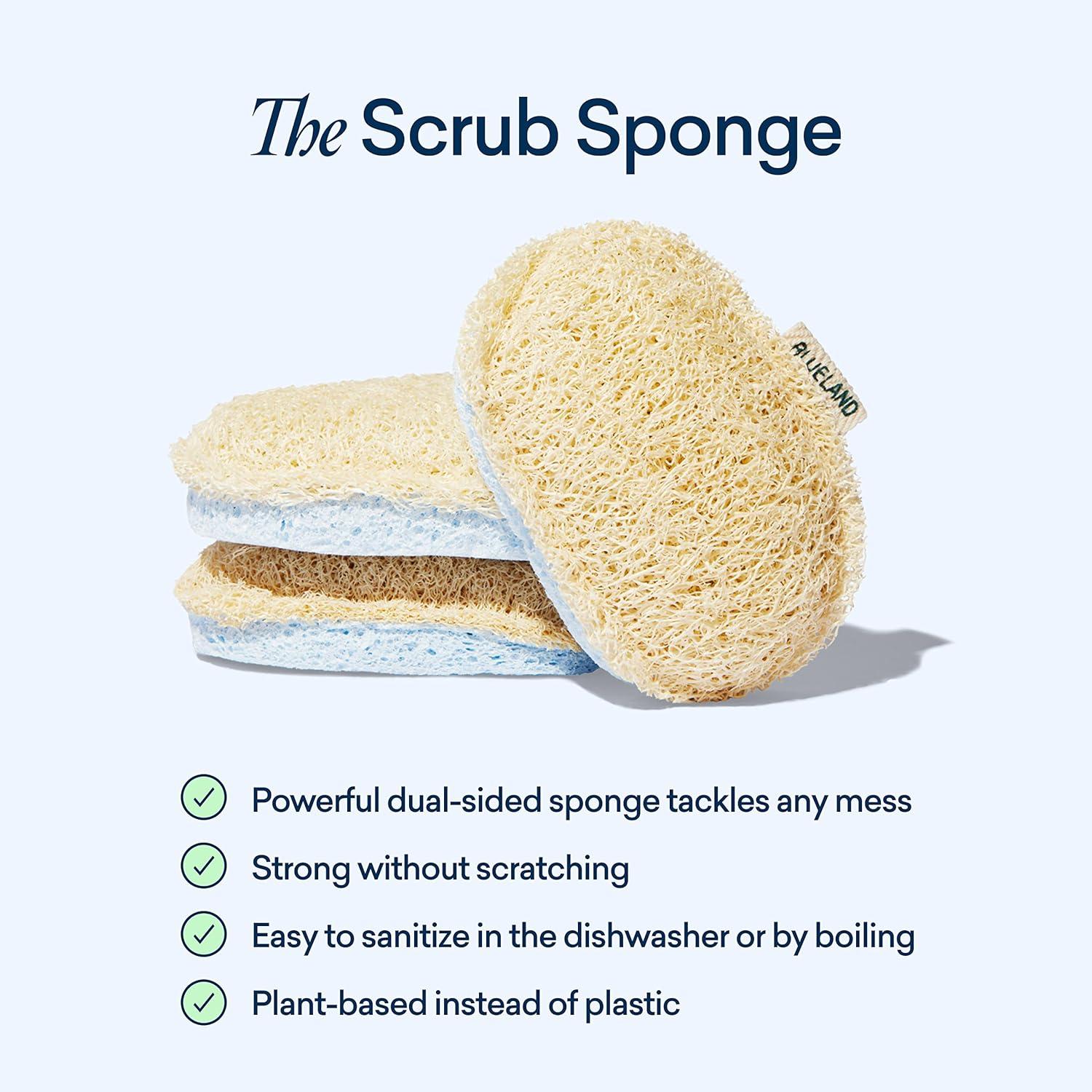 BLUELAND Scrub Sponge, 3-Pack, Dual-Sided Dish Loofah, Plastic-Free, Plant-Based Kitchen Scrubbing Non-Scratch