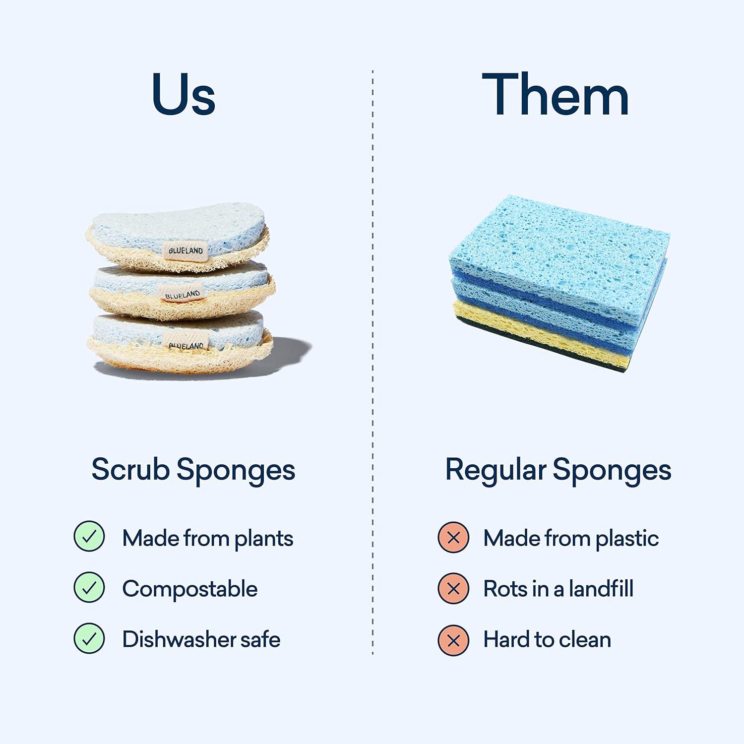 POWERFUL AND PLASTIC-FREE. Unlike conventional kitchen sponges that contain plastic, our compostable dual-action sponge works just as hard, but with plant-based power.